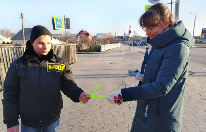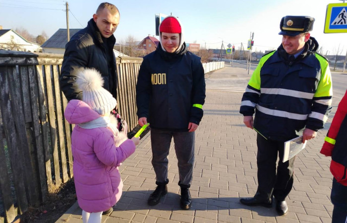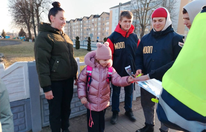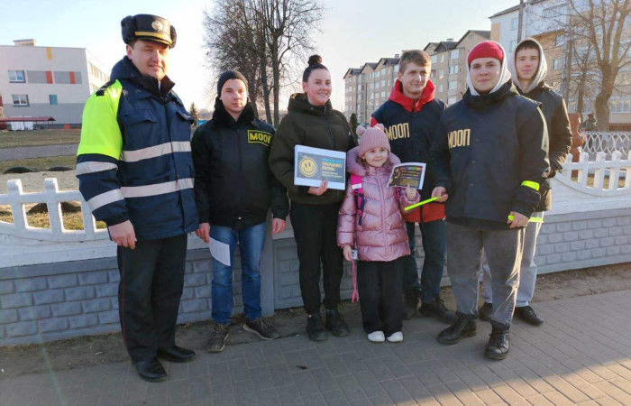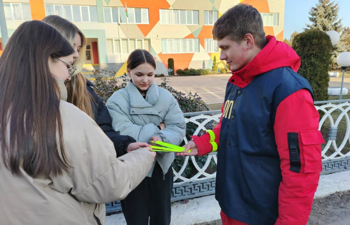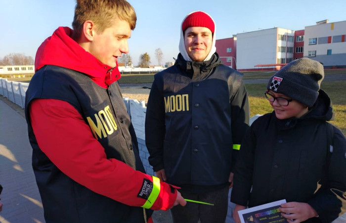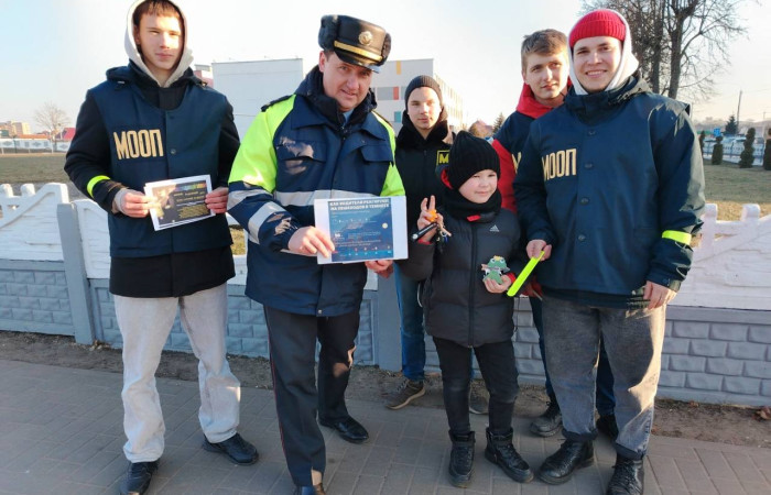 13.02.2025 бойцы МООП «Ягуар» из «Ивацевичского государственного аграрного колледжа» совместно с сотрудниками ОГАИ Ивацевичского РОВД провели акцию «Стань заметней». С целью профилактики ДТП, гибели и травматизма людей на дорогах в темное время суток пешеходам напомнили о правилах движения на дороге. Бойцы МООП «Ягуар» совместно с начальником ОГАИ Ивацевичского РОВД Трофимчиком Сергеем Ивановичем вручали фликеры жителям райцентра вблизи средней школы №4 им. Н.Н.Мультана.