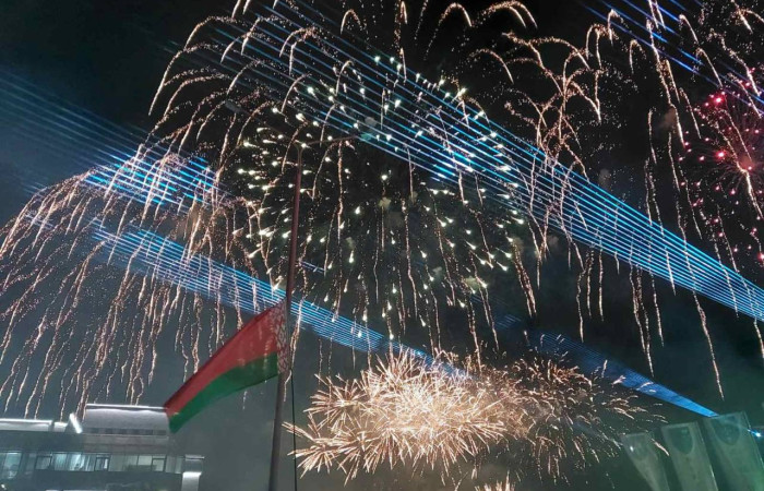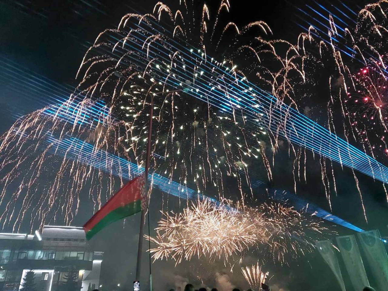 празднование Дня народного единства в Бресте ярким и продолжительным фейерверком.