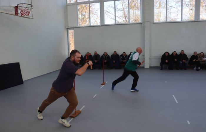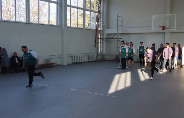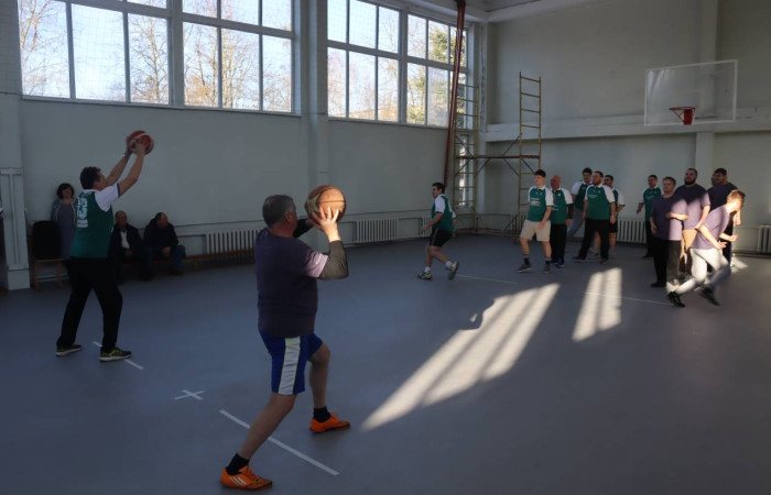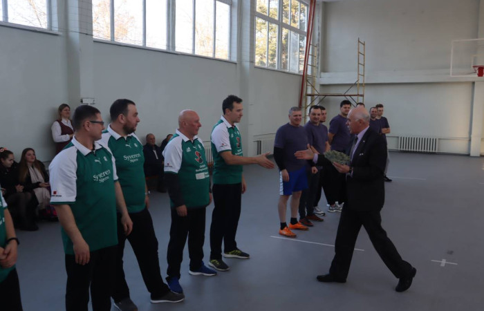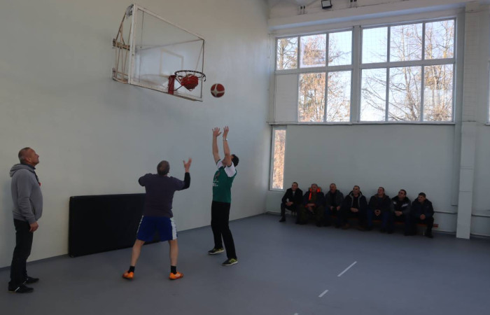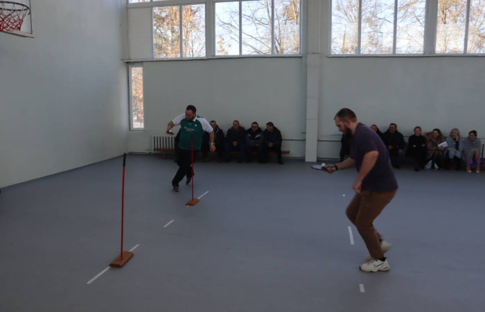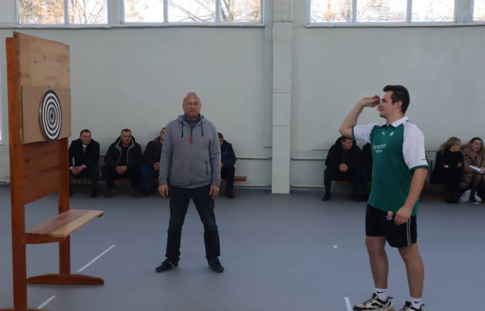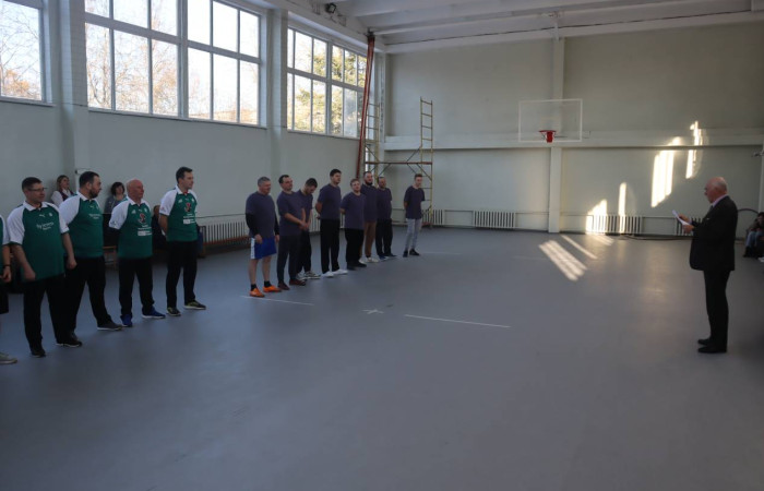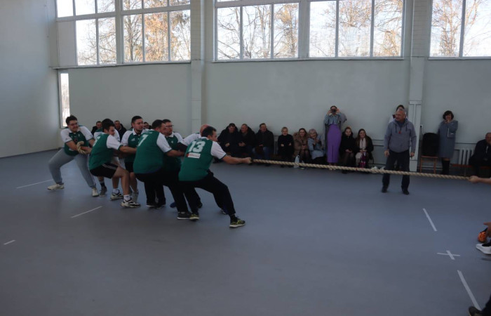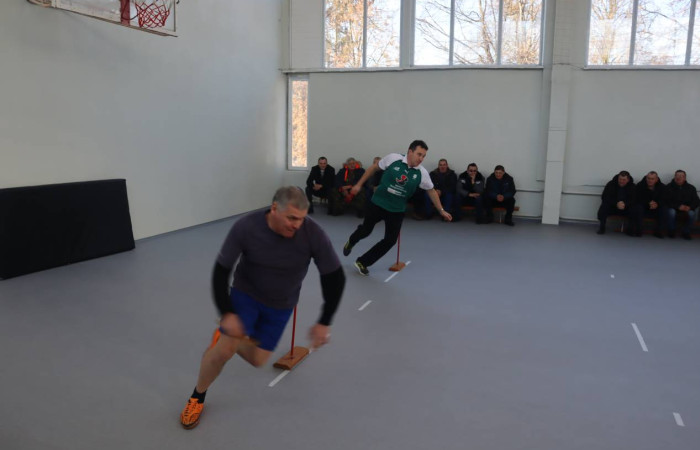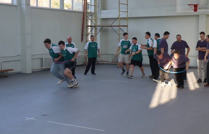После концертной программы в спортивном зале проводилась спартакиада, участниками которой были мужские команды работников колледжа. Мужчины демонстрировали свою силу, меткость, ловкость и скорость. За ходом соревнований наблюдало жюри, а болельщики активно поддерживали наших участников.