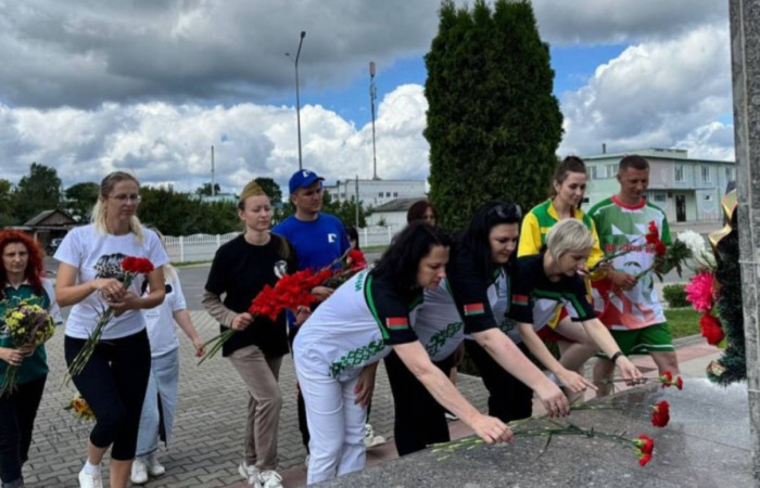 После торжественного открытия и поднятия флага представители каждой команды отправились к братской могиле советских воинов и партизан в г.п. Телеханы, чтобы возложить цветы и почтить память погибших в годы Великой Отечественной войны.