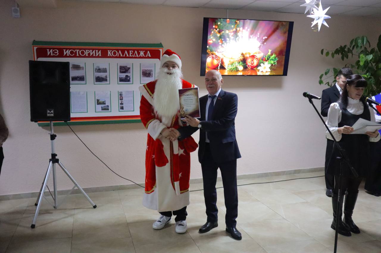 29 декабря в колледже прошёл смотр-конкурс художественной самодеятельности, на котором свои таланты демонстрировали учащиеся 1 курса. Ребята подготовили яркие, зажигательные новогодние номера, чем очень порадовали зрителей.
