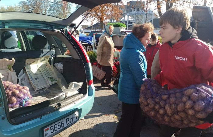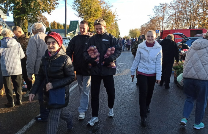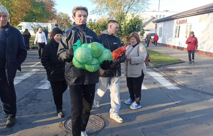 В субботу, 12 октября, во время проведения «Восеньскага кірмаша», учащиеся из МООП «Ягуар» Ивацевичского аграрного колледжа приняли активное участие в акции «Мы выбираем помощь пожилым людям!».