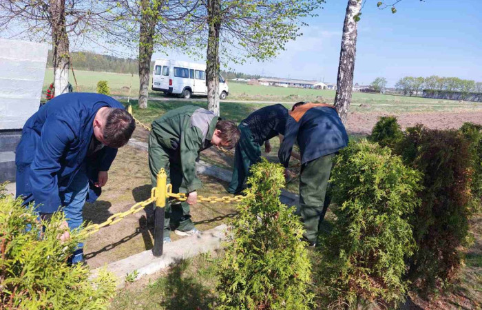 22 апреля в рамках подготовки к празднованию 80-летия Великой Победы учащиеся колледжа совместно с руководителем по военно-патриотическому воспитанию Яроцкой И.И. провели акцию «Памятник». Ребята убрали территорию вокруг памятника сожженным жителям деревни Затишье, который расположен на территории учебного хозяйства Ивацевичского государственного аграрного колледжа в д.Серадово.
