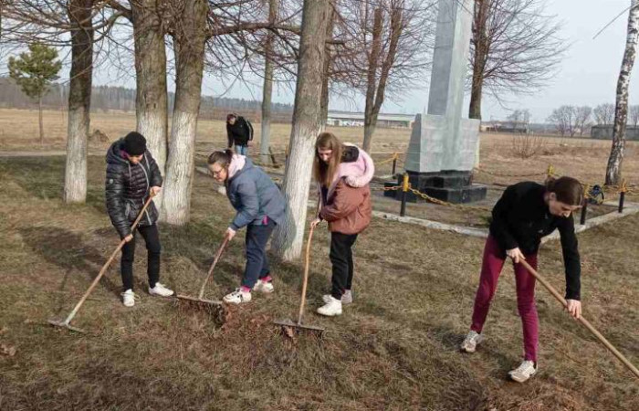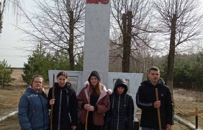 В преддверии Дня памяти жертв Хатыни учащиеся колледжа направились в д.Серадово, где находится памятник сожжённым в годы Великой Отечественной войны жителям д.Затишье, чтобы навести порядок на прилегающей территории.