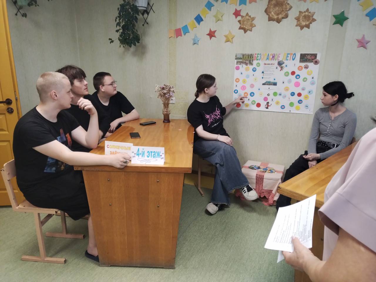 В рамках недели безопасности «Наш выбор – жизнь без опасности» 17 июня в общежитии колледжа состоялась игра, в которой приняли участие команды ребят четвёртого и пятого этажей – «Солнечные зайчики» и «Солнечные лучики».
