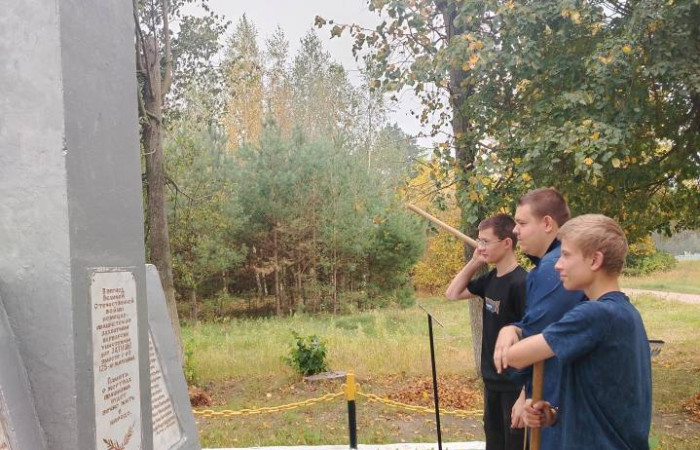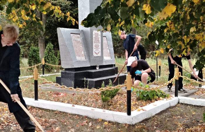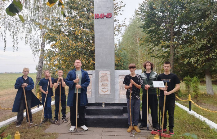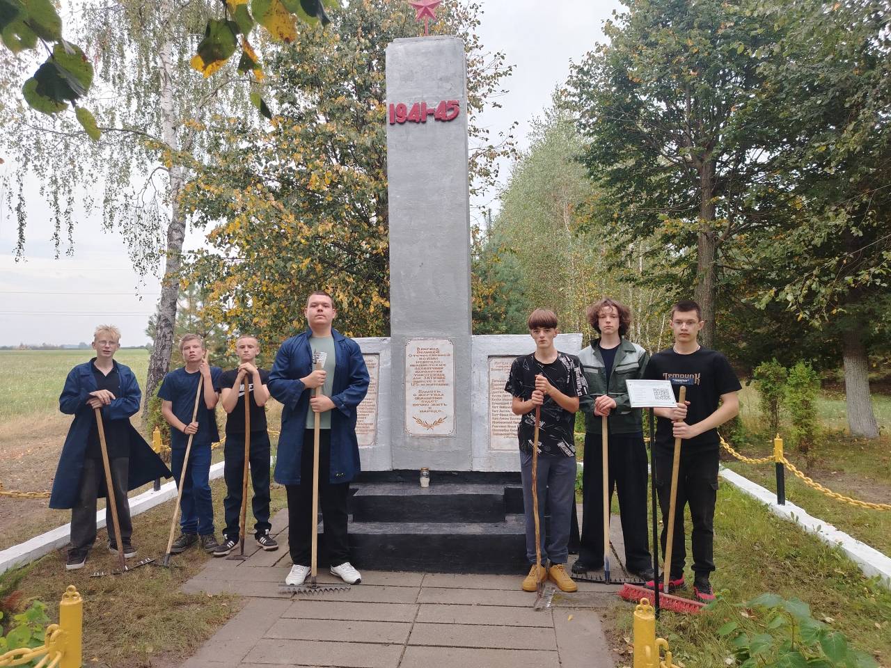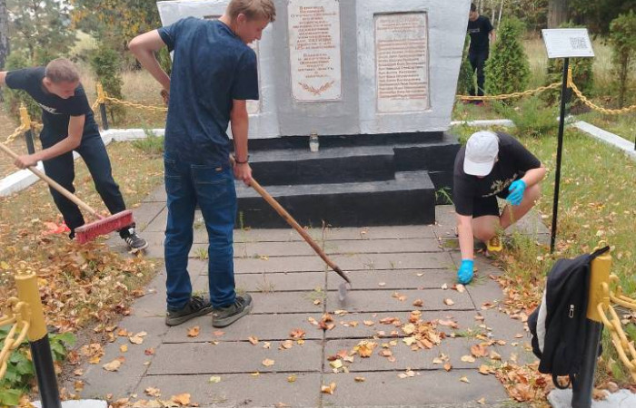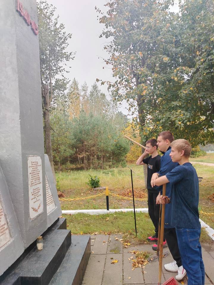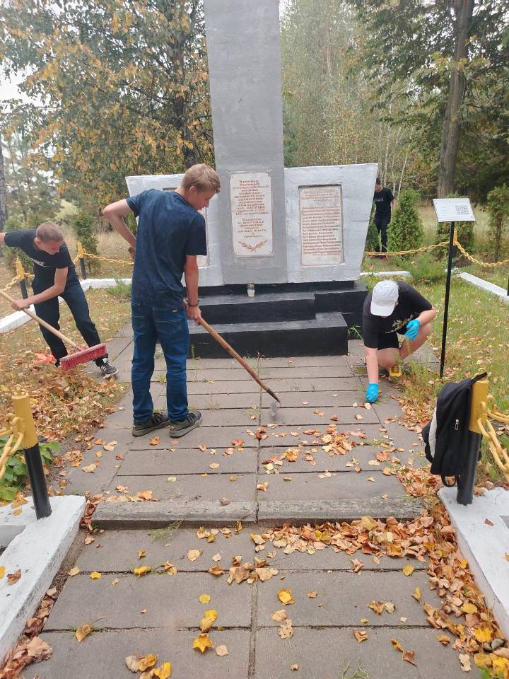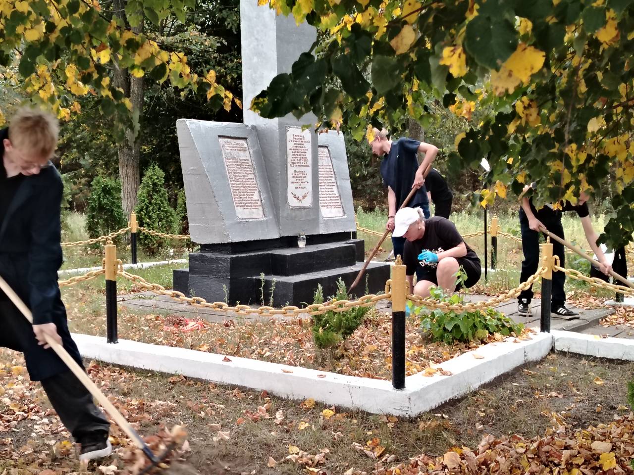 Во время акции ребята убирали листья, собирали мусор, облагораживали территорию памятника. Памятник – это дань уважения подвигу тех, кто навсегда остался непокоренным, стойким, смелым, отстаивая свободу и мирную жизнь. Это дать уважения нашим предкам, благодаря которым мы живем, учимся и трудимся.