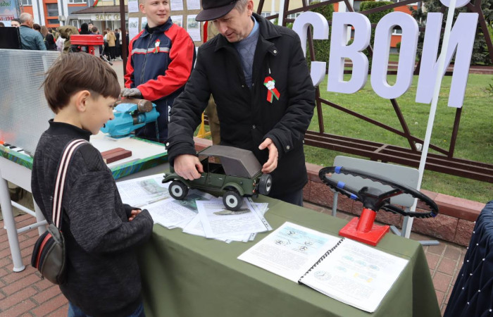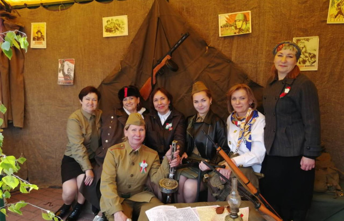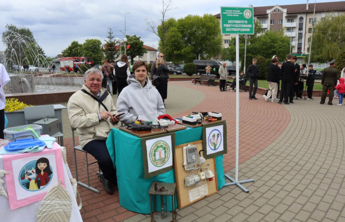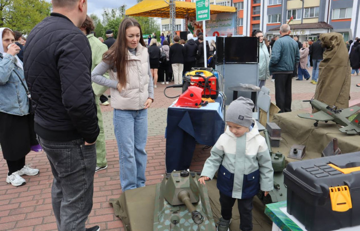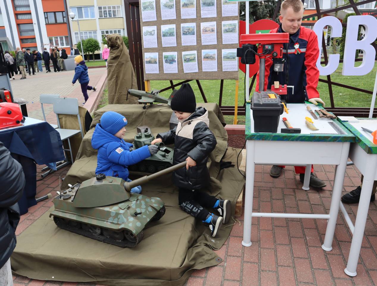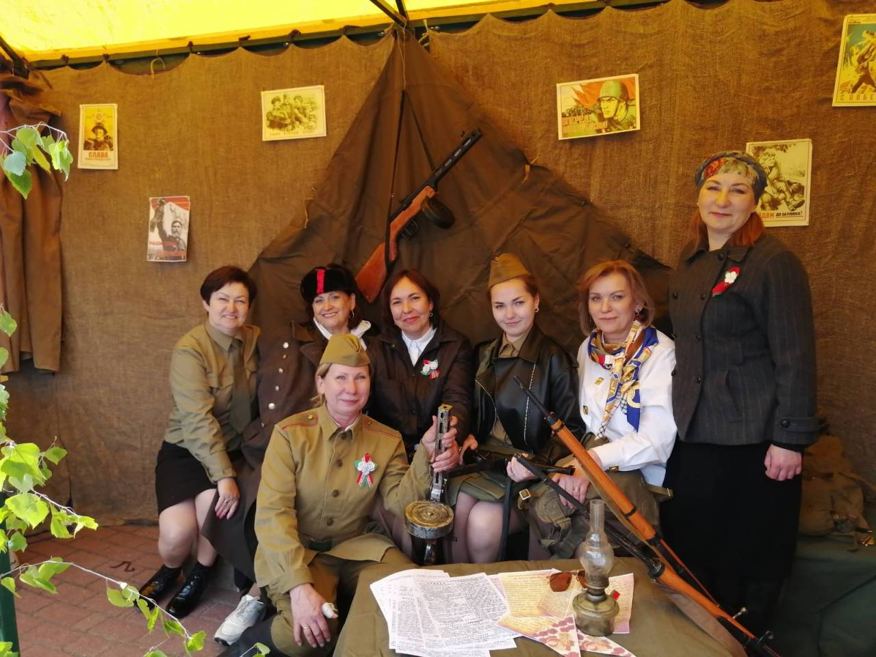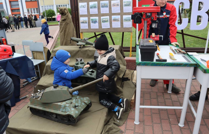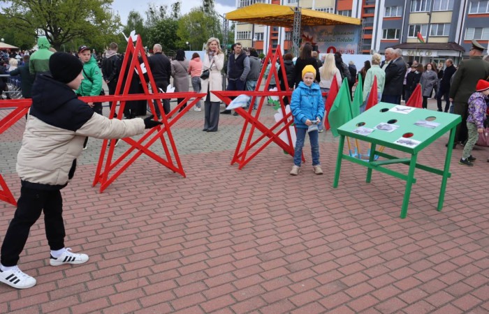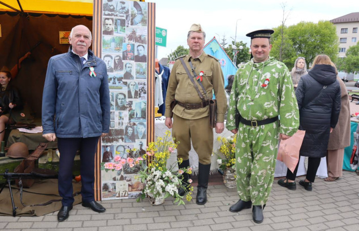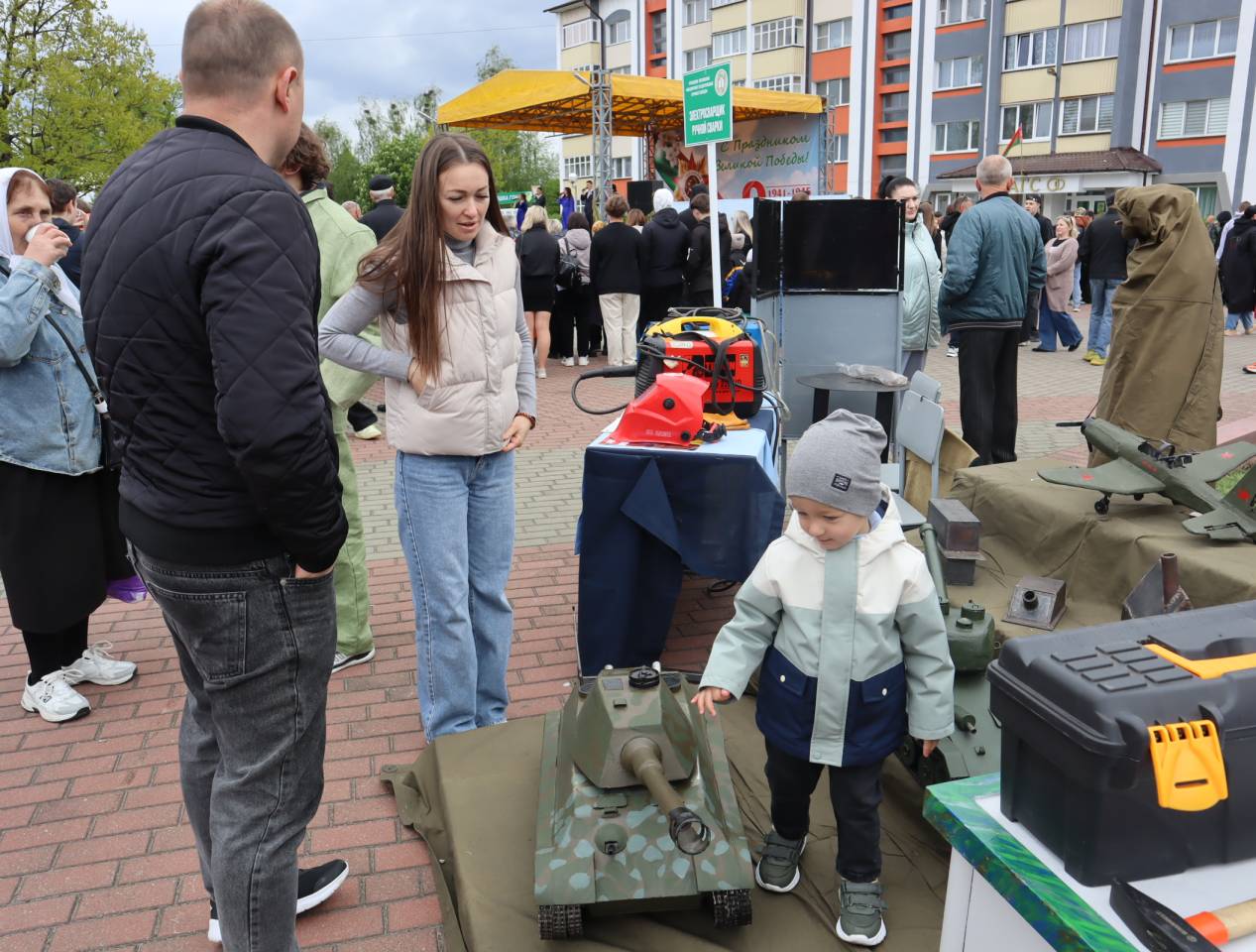 С утра были возложены цветы к памятнику погибшим в годы войны мирным жителям. Далее представители нашего трудового коллектива и учащиеся прошлись в праздничной колонне по главной улице города, присутствовали на митинге-реквиеме «Слава Великой Победе» у памятника в городском сквере Победы. На площади у райисполкома наш колледж организовал интерактивную площадку, на которой всё было оформлено в военной тематике. На ней демонстрировались мастер-классы по профессиям, выставка макетов военной техники. Особой популярностью у посетителей пользовалась наша фотозона, дегустация закусок походной кухни и игры на меткость в уничтожении вражеской техники.