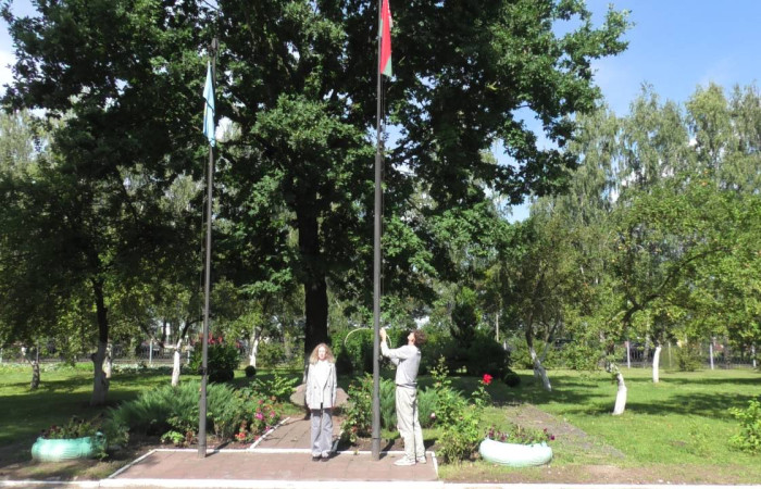 После линейки, по традиции, для учащихся первого курса в актовом зале был проведен первый урок, который в 2023 году проходил по теме «Беларусь и я – диалог мира и созидания».