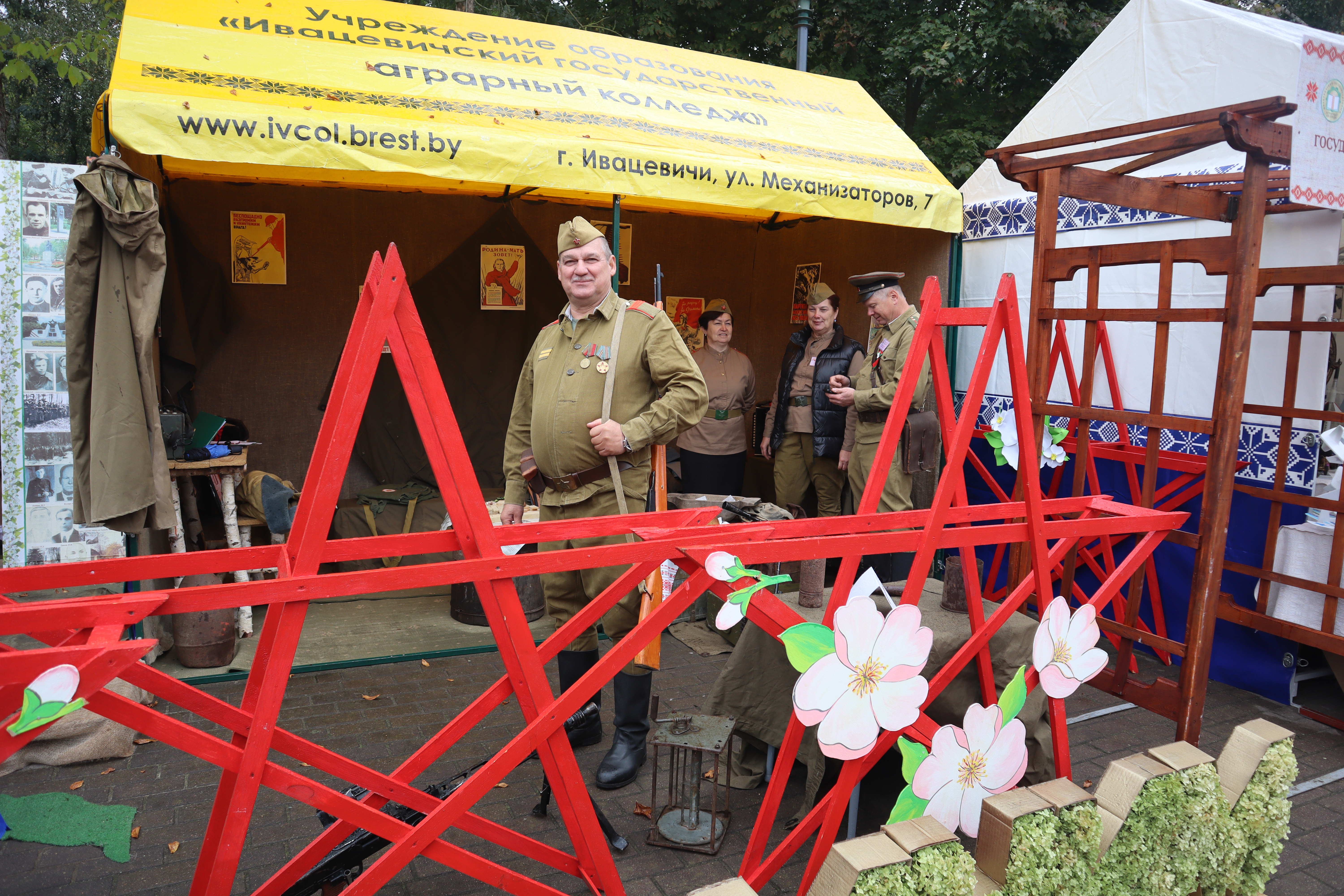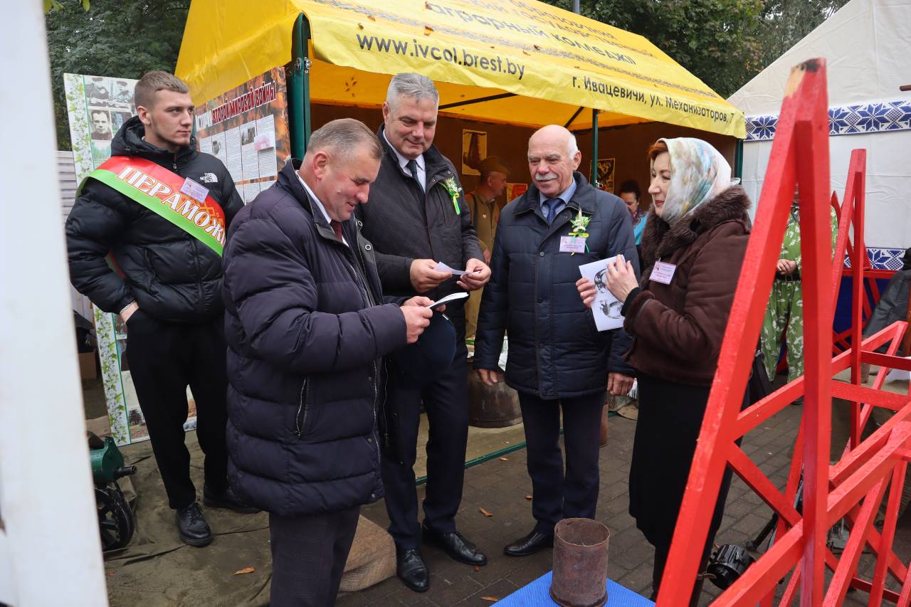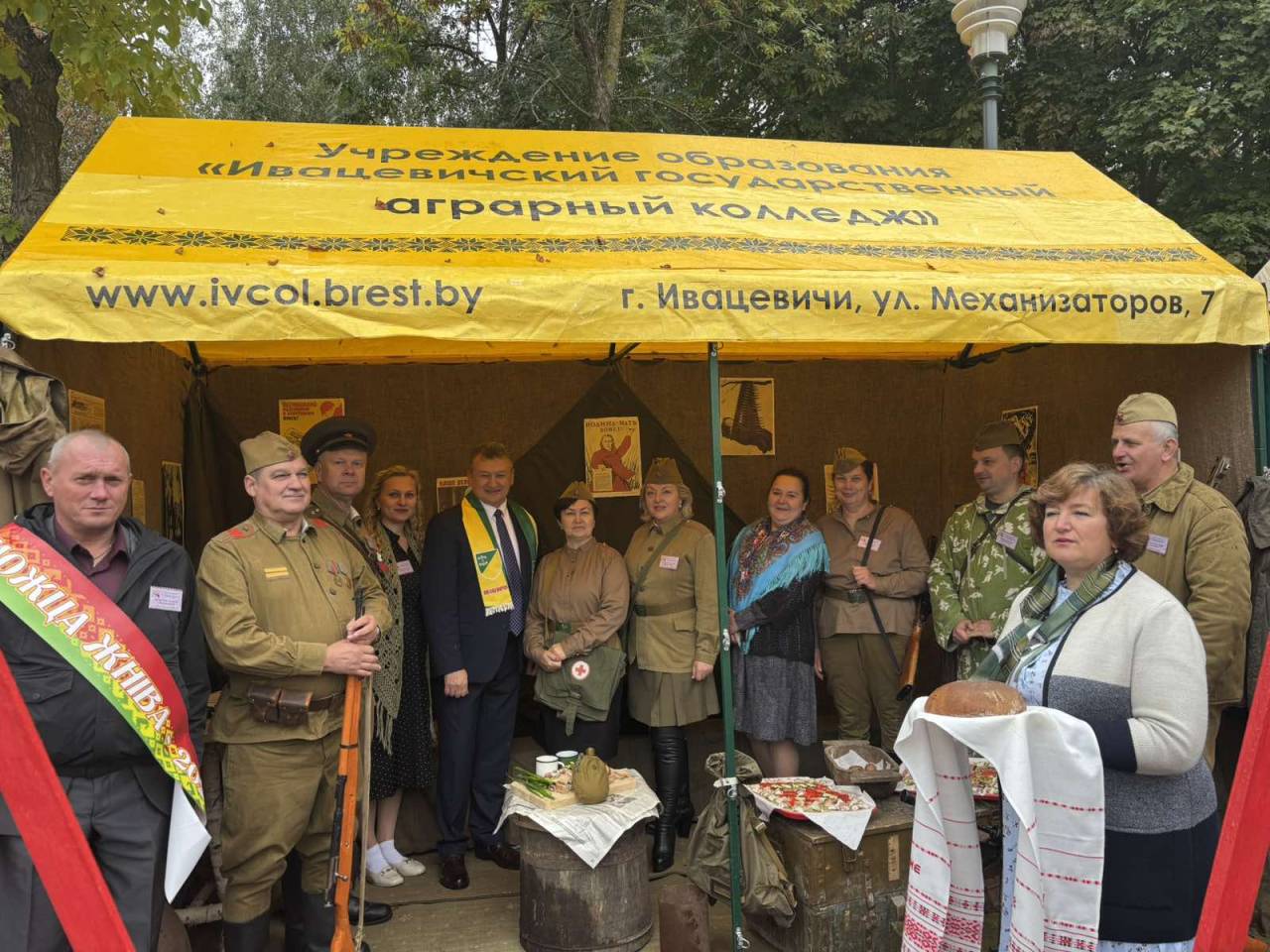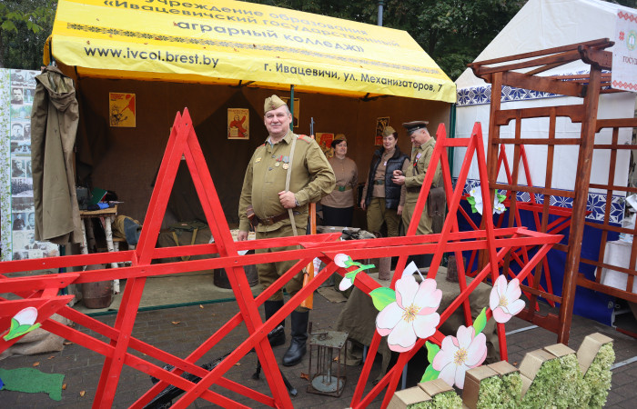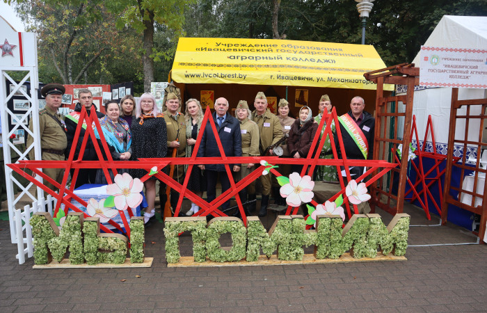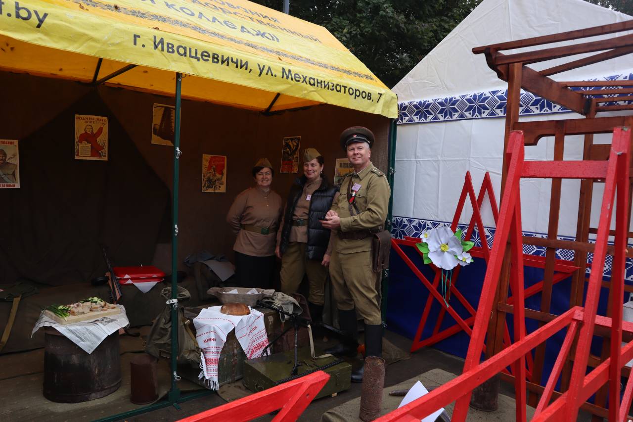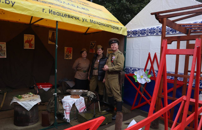 Ежегодно Ивацевичский государственный аграрный колледж принимает участие в областном фестивале-ярмарке Дожинки. В этом году наш колледж представлял военное время 1941-1945 годов: интерактивная площадка, форма участников делегации, защита каравая – всё было подчинено военной тематике.