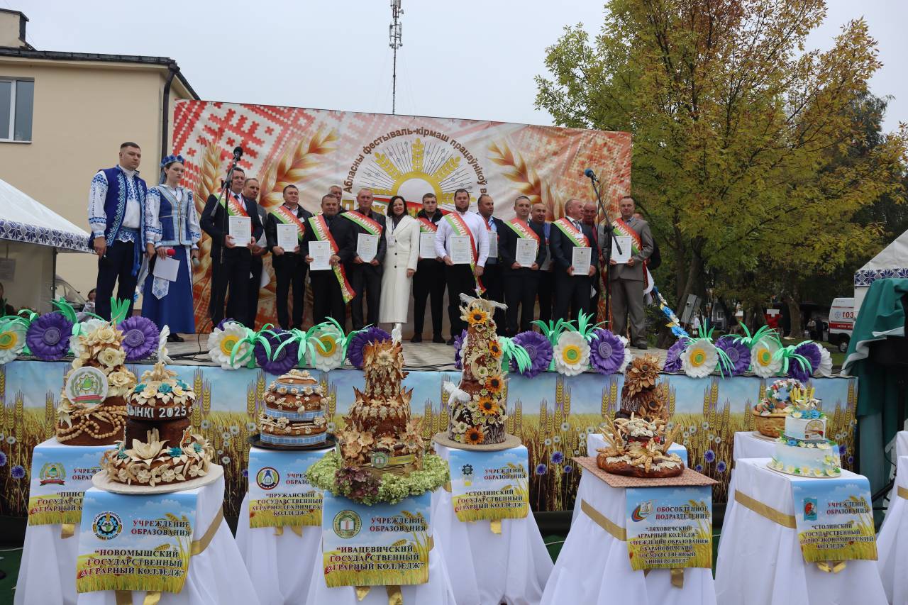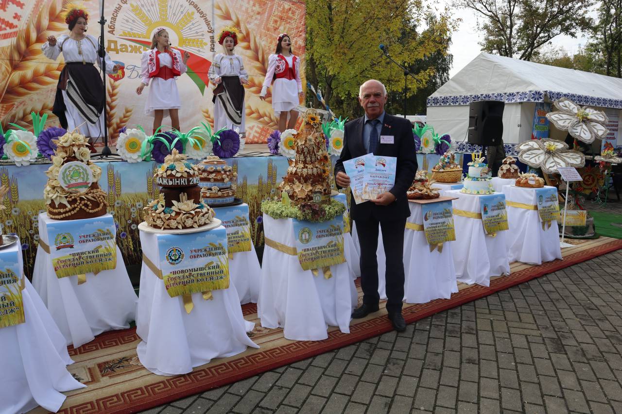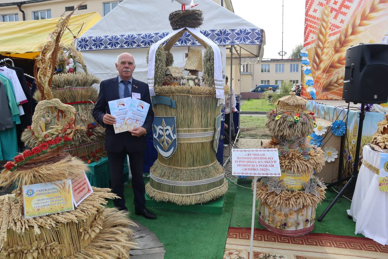 Наш колледж участвовал в конкурсе на лучшую композицию из зерновых культур, в конкурсе «Каравай-2025» и был награждён Дипломами главного управления по образованию. За хорошие показатели в уборочной кампании 2025 года наши мастера производственного обучения Колбаско А.Г. и Игнатов Н.Д. также были награждены Дипломами главного управления по образованию. Вокальная группа «Жемчужины» дарила зрителям свои песни.