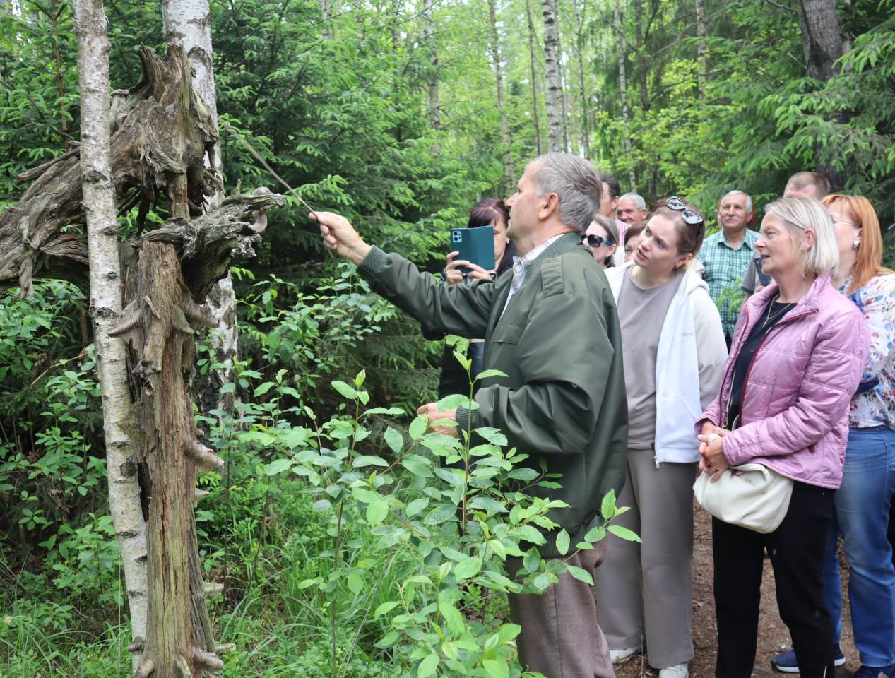 Туристы проходили по гати из брёвен через низинное болото и оказывались на удивительном острове, который является ботаническим памятником природы. Здесь работники колледжа увидели множество редких растений, узнали, какие птицы и звери обитают в этих местах.