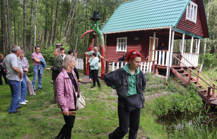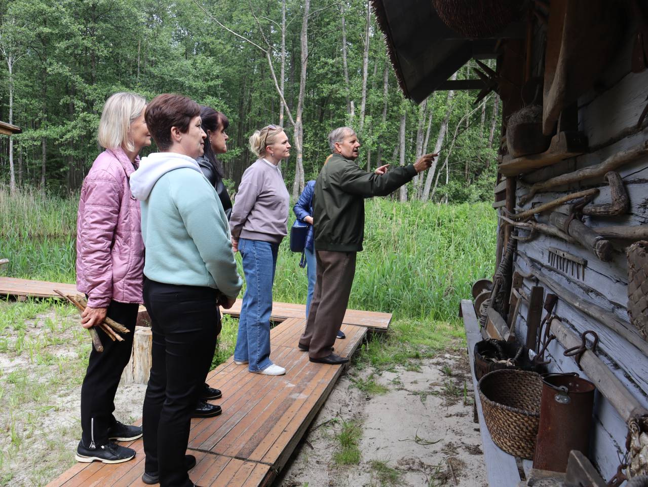 Экскурсанты посетили усадьбу полешука. Здесь они увидели 100-летний рубленый топором дом с мебелью, кухонной утварью и предметами быта, которыми наши предки пользовались в повседневной жизни. Этот домик с его внутренним убранством позволил окунуться всем в те далёкие времена, вспомнить дома своих дедушек и бабушек, и почувствовать связь со своими «корнями».