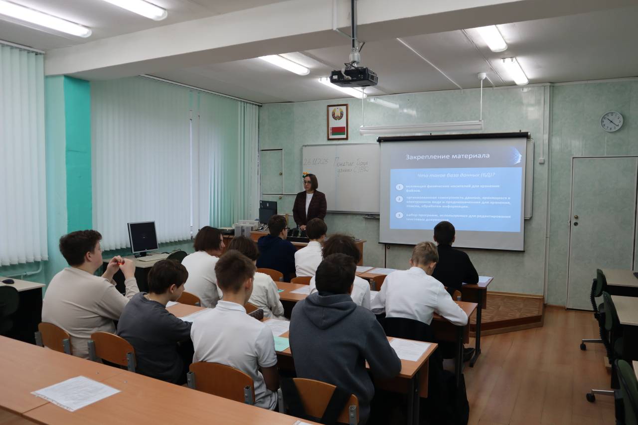 26 ноября 2025 года преподаватель информатики Ильчук Татьяна Геннадьевна провела открытый урок по теме «Понятие базы данных. Система управления базами данных».