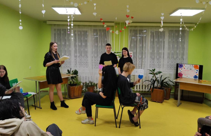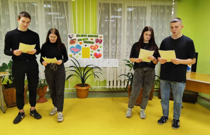 Между конкурсами ведущие программы Баран Вячеслав и Свинобурко Дарья, Ятченя Алексей и Стреха Мария читали стихи о любви, знакомили ребят с историей праздника, его символами и традициями в разных странах мира.