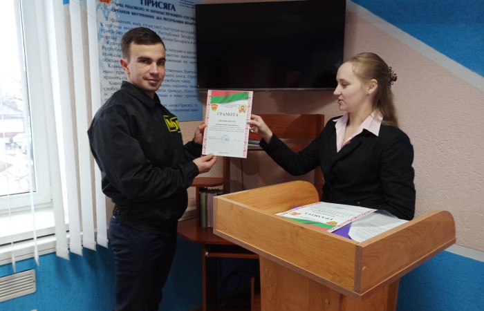 Самые активные бойцы МООП «Ягуар» были награждены первым секретарем Ивацевичского РК ОО «БРСМ» Клютко Н.Н. грамотами за активную гражданскую позицию, постоянное плодотворное сотрудничество и участие в становлении и развитии МООП.