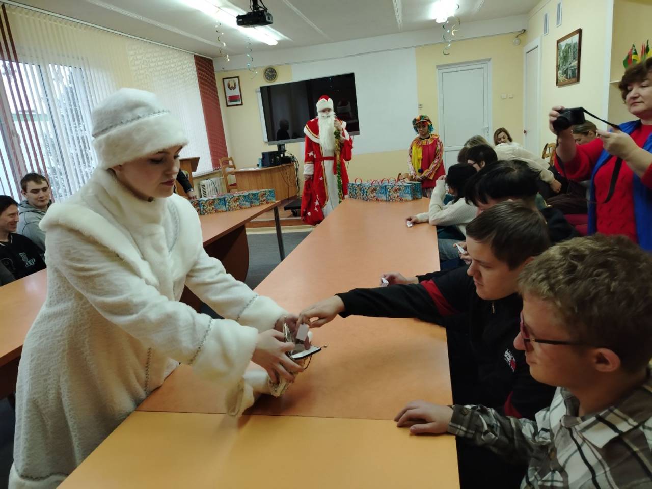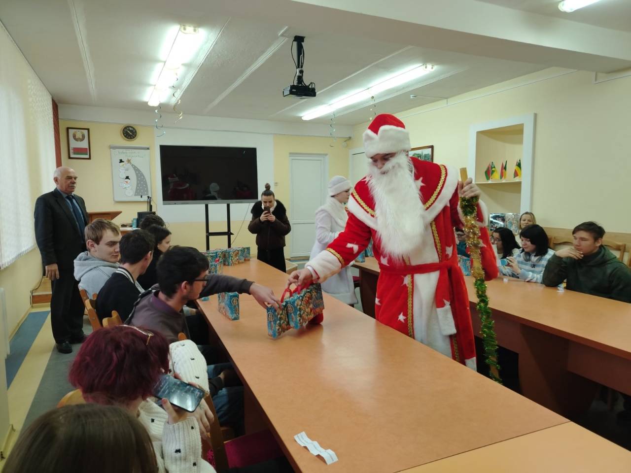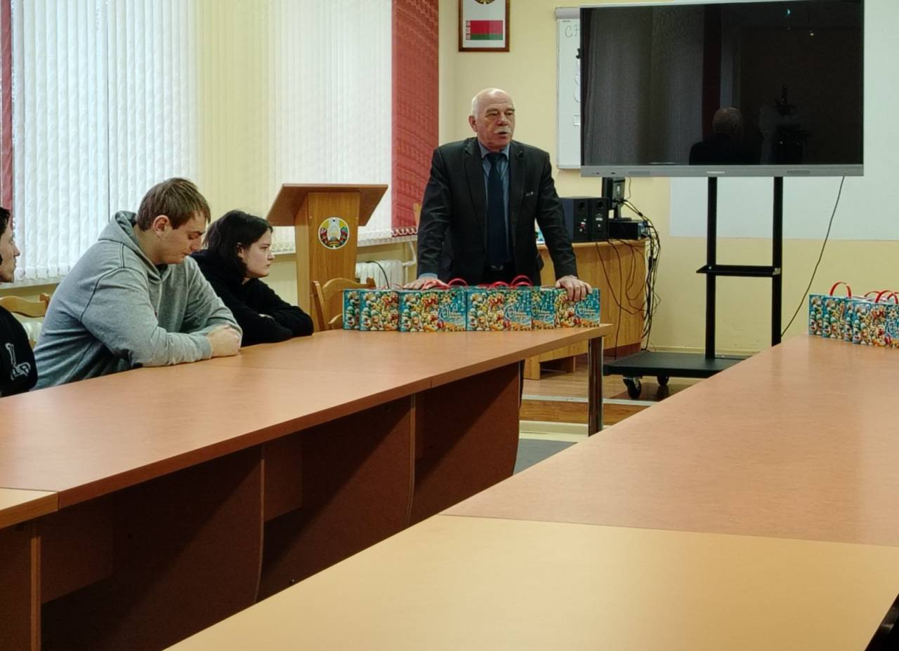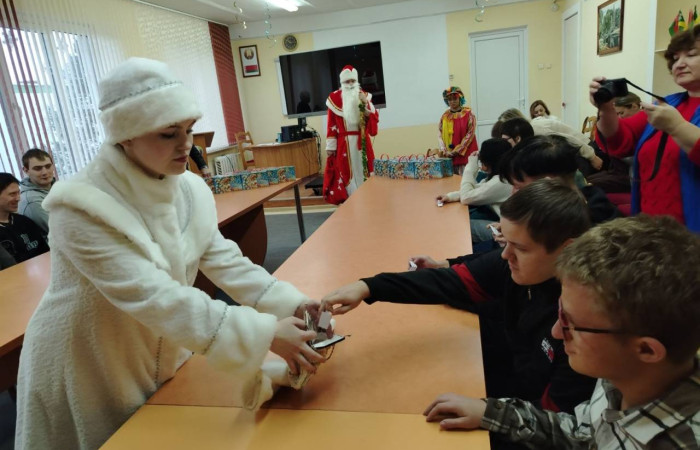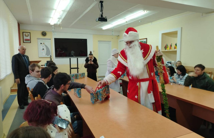 Новогоднее поздравление ребят, которые находятся на государственном обеспечении под опекой директора колледжа Дымовича Михаила Евгеньевича, - это добрая традиция, существующая уже более 15 лет. Каждый год мы собираемся и ждем подарков от самых главных волшебников – Деда Мороза и Снегурочки.