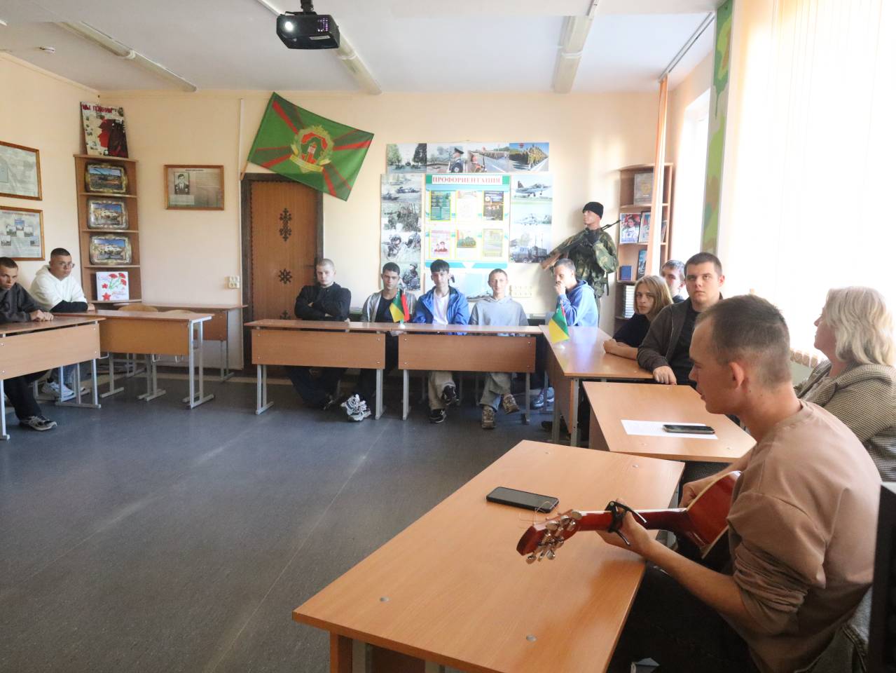 Павел рассказал ребятам о своей заставе, об особенностях пограничной службы, о быте и отдыхе пограничников, о качествах, которыми должен обладать каждый страж государственных рубежей. Кроме рассказов наш гость пел свои авторские песни о пограничниках.