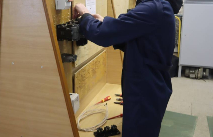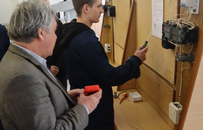 Практический тур конкурса учащиеся выполняли под руководством мастера производственного обучения Кота П.Н. Задание – монтаж осветительной схемы управления электродвигателем при помощи магнитного пускателя.