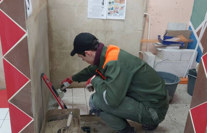 В практическом туре конкурса профессионального мастерства соревновались 6 конкурсантов. Заданием для участников по квалификации «Облицовщик-плиточник» было: «Укладка плитки прямыми рядами способом «шов в шов». По результатам конкурса определились следующие победители: