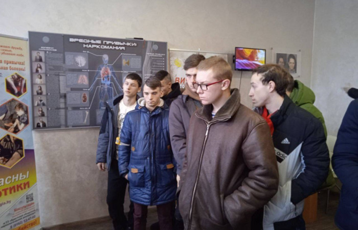 23 января актив ПО ОО «БРСМ» и ученического профкома провели флешмоб «АЛКО-СТОП». А учащиеся групп 498, 499 и 500 посетили Центр наглядной профилактики в г.Бресте.