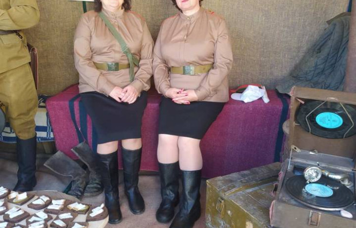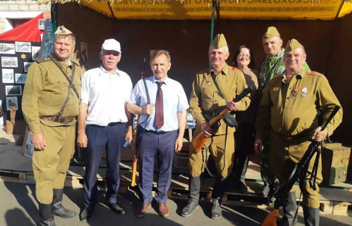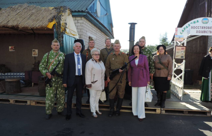 В этом году Ивацевичский район принимал участников и гостей областного фестиваля-ярмарки «Дажынкі-2022». Работники и учащиеся учреждения образования «Ивацевичский государственный аграрный колледж» приняли самое активное участие в этом празднике. Здесь нашим колледжем были представлены образцы различной сельскохозяйственной техники, мы принимали участие в конкурсах «Лучшая композиция из зерновых культур нового урожая «Жатва - 2022» и «Каравай - 2022», а учащиеся демонстрировали свои таланты в концертной программе «Да прафесіі – праз творчасць!». Своеобразной изюминкой нашего колледжа на этом мероприятии была тематическая фотозона под названием «Военные годы». Здесь была представлена землянка с предметами незатейливого партизанского быта: берёзовый табурет, патефон, оружие, рация, партизанские бутерброды и, конечно же, полевая кухня. Все эти атрибуты и люди в военной форме создавали атмосферу времени Великой Отечественной войны. Гости праздника с удовольствием фотографировались в нашей землянке и угощались солдатской кашей.