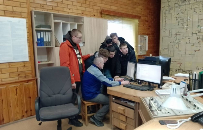 В ходе экскурсии будущие электромонтеры побывали на главном диспетчерском пункте, где начальник районной диспетчерской службы Чех А.Ю. познакомил с работой диспетчера, рассказал о назначении и принципах работы Ивацевичских районных электрических сетей.