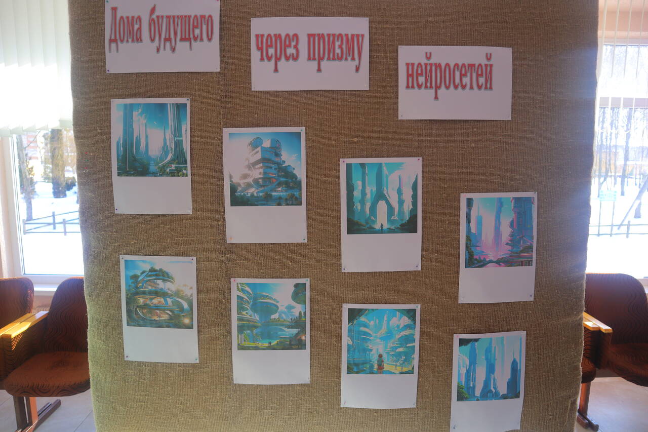 В фойе колледжа организована выставка тематических материалов, инструментов и образцов декоративной штукатурки, облицовочных изделий. Библиотека представила выставку «Дом будущего через призму нейросетей». Выставки будут работать на протяжении всей Недели.