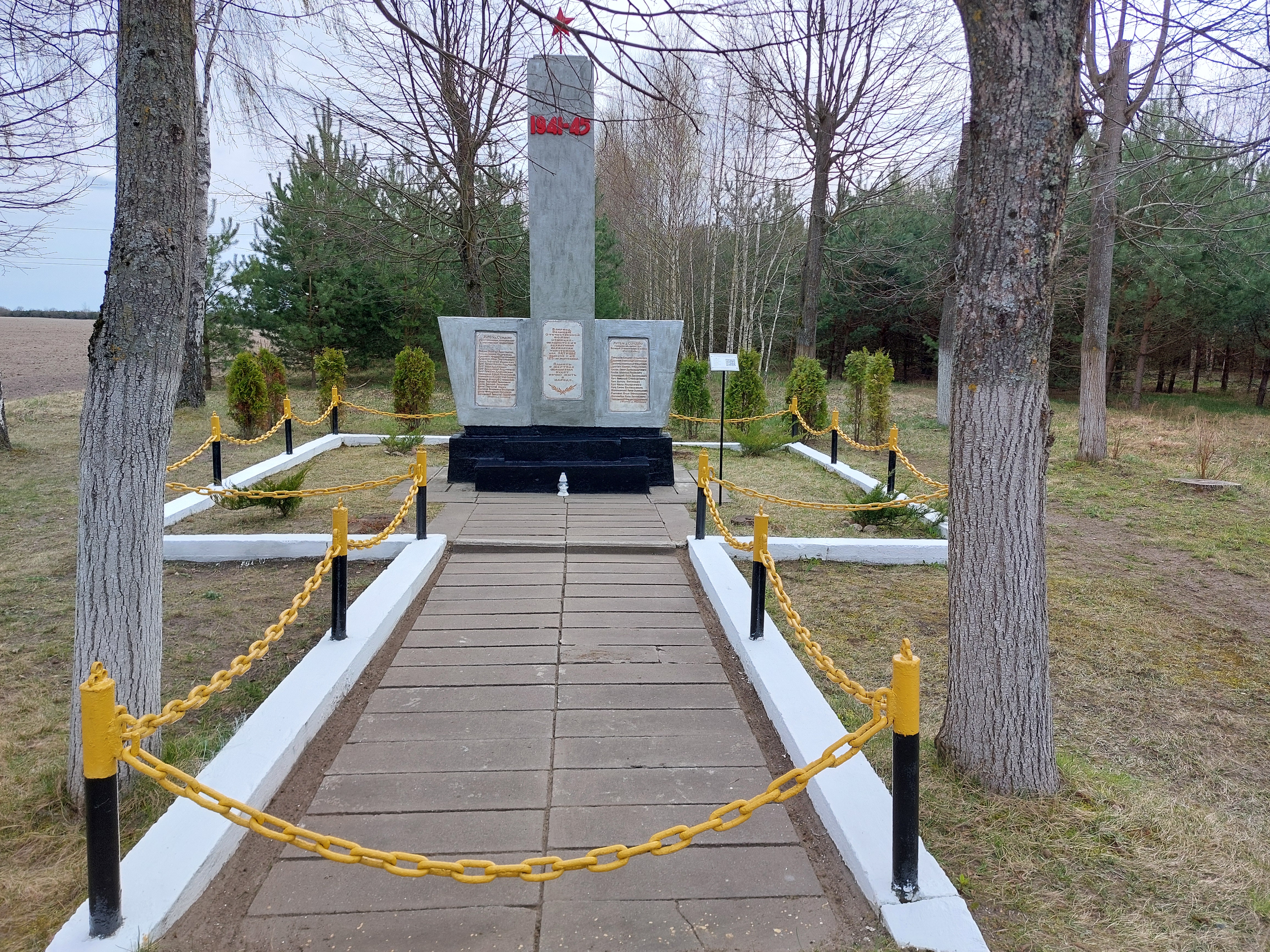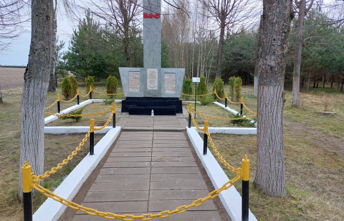 Работы по благоустройству проводились возле памятника в д. Серадово, установленного неподалёку сожжённой деревни Затишье.
