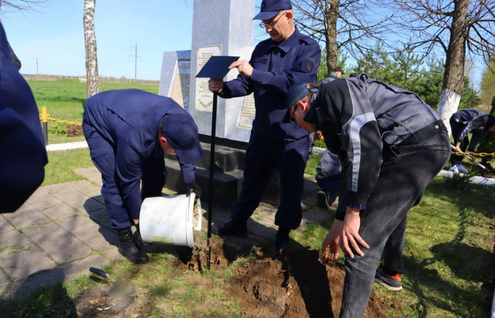 В рамках республиканского субботника учащиеся колледжа потрудились в д.Серадово возле памятника сожжённым в годы Великой Отечественной войны жителям д. Затишье. В этом мероприятии также участвовали сотрудники прокуратуры Ивацевичского района, Ивацевичского районного отдела Следственного комитета и руководство Житлинского сельского исполнительного комитета. Вместе со взрослыми наши ребята высадили 30 туй, очистили дорожку, убрали прошлогоднюю листву и сорняки. В завершении субботника участниками была установлена табличка с QR-кодом, отсканировав который, каждый сможет получить информацию о сожжённой деревне.