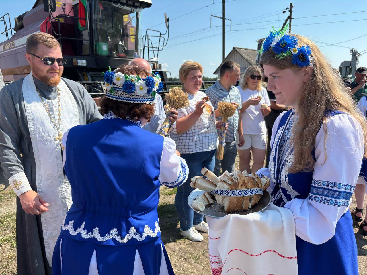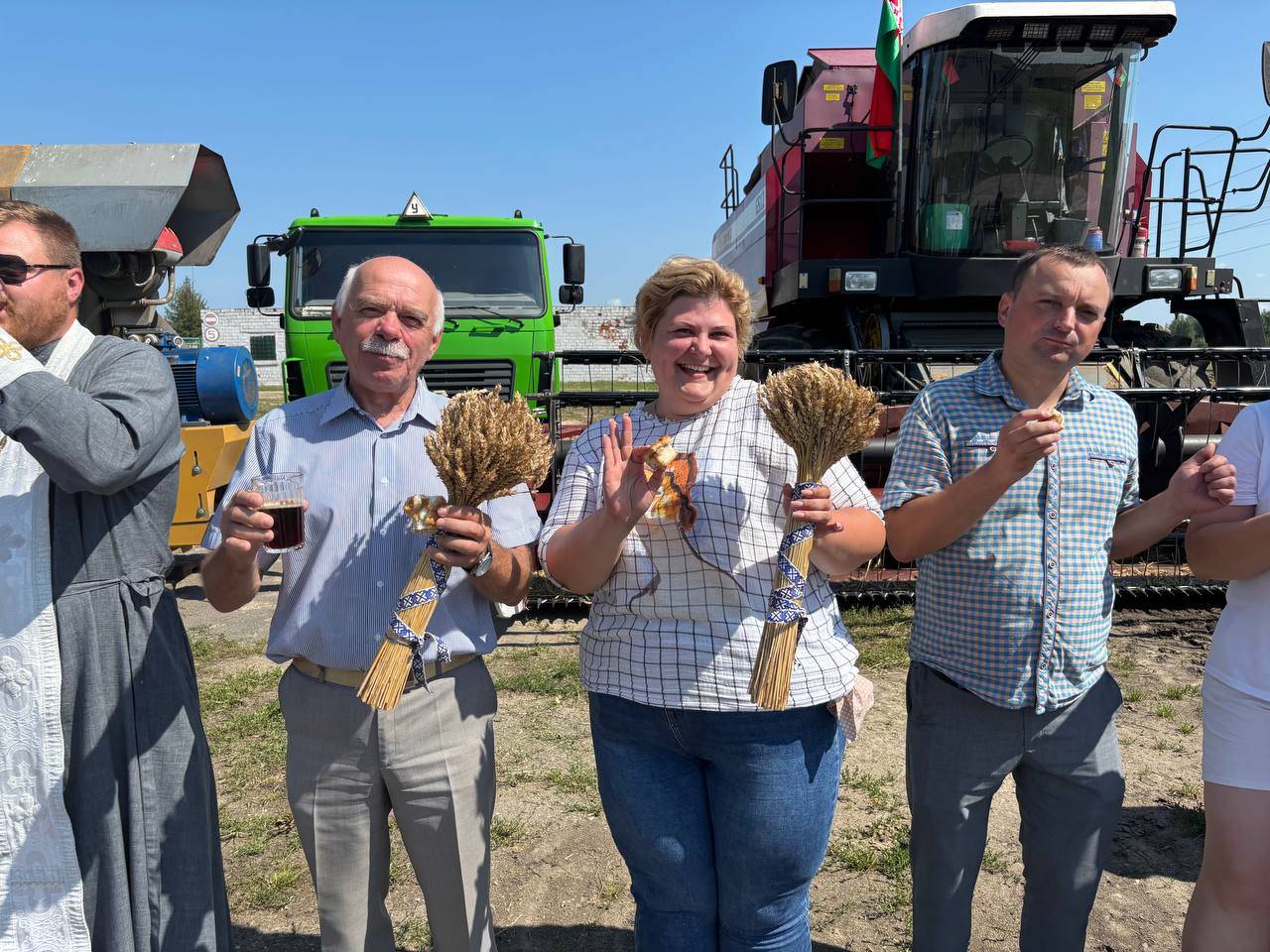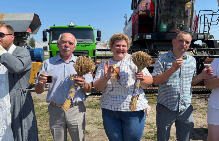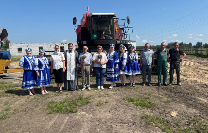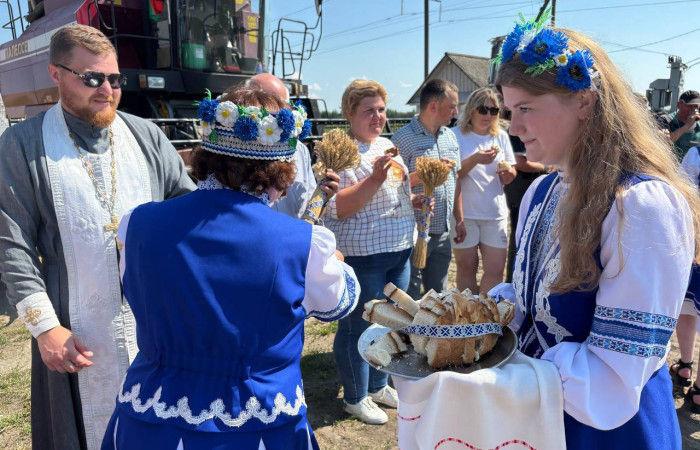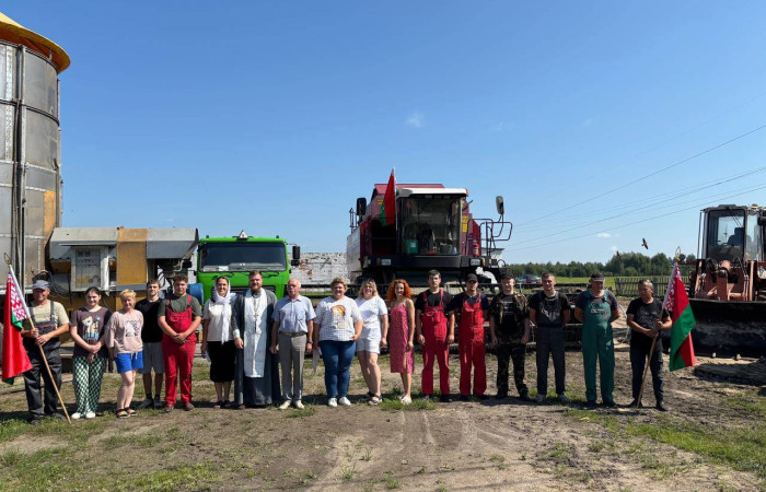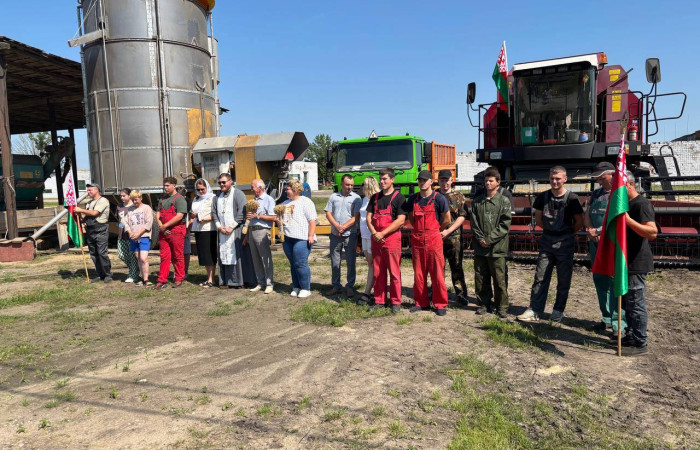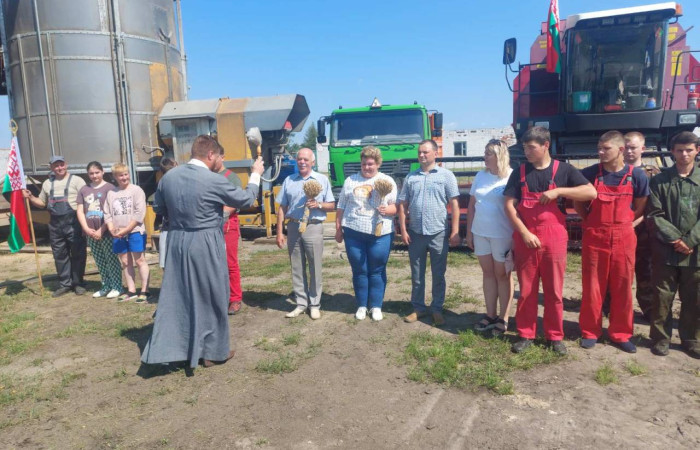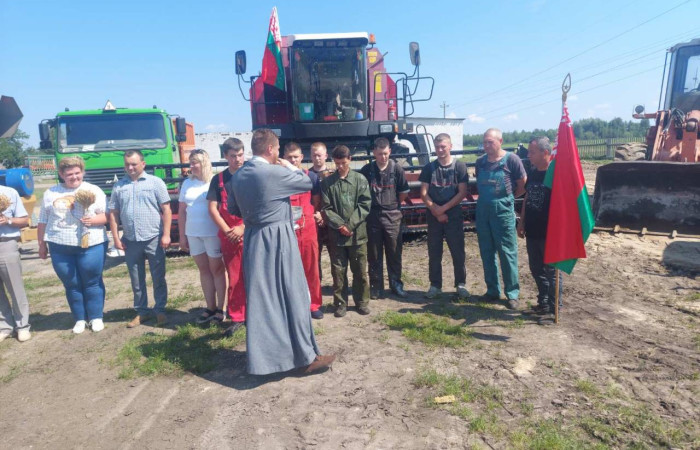 Перед выходом техники в поле, прозвучали слова напутствия от настоятеля храма иконы «Неупиваемая чаша» иерея И.Шоломицкого. Он отслужил молебен на начало доброго дела, чтобы Господь благословил всех и помогал в уборке хлеба.