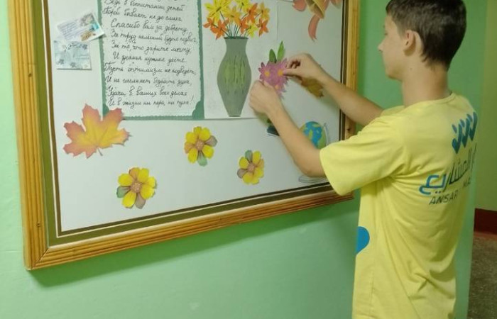 Ребята приняли непосредственное участие в мероприятии: писали поздравительные письма, делали украшения, оформляли праздничные стенды в холле 2 этажа и комнате отдыха.