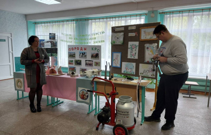 С 22 по 26 апреля 2024 года в Ивацевичском государственном аграрном колледже проходила Неделя профессионального мастерства по квалификации «Оператор машинного доения». Участники Недели – учащиеся 497 группы центра профессиональной и социальной реабилитации для лиц с ОПФР. Программа включала мастер-класс по разборке и сборке доильного аппарата, квест, тематические фотовыставки, демонстрацию видеороликов и конкурс профессионального мастерства. Каждому участнику была предоставлена возможность проявить себя и продемонстрировать свой уровень знаний.