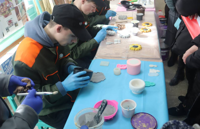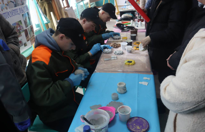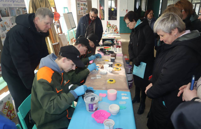 выставка инструмента и инвентаря отделочника, выставка инструмента и инвентаря отделочника 80-х гг. «Назад в СССР», в рамках которой учащиеся могли ознакомиться с историей производственной деятельности строителей. Видеоролики из серии «Современные технологии в строительстве» демонстрировали и презентовали современные строительные материалы и технологии их использования. Конкурс профмастерства по квалификации «Облицовщик-плиточник» и «Штукатур» состоял из теоретического и практического туров. Задание практического тура для учащихся 510 группы по квалификации «Штукатур» – выполнение простого оштукатуривания без затирания поверхности. Задание практического тура для учащихся 496 группы по квалификации «Штукатур» – выполнение простой штукатурки. Задание практического тура для учащихся 499 группы по квалификации «Облицовщик-плиточник» – укладка плитки прямыми рядами на пол. Кроме демонстрации личностных и профессиональных качеств учащимся нужно было проявить себя в творческом решении профессиональных проблем. Мастера производственного обучения Чурай Н.А., Ягнешик Т.Н. после оценки качества выполненных работ сделали детальное разъяснение дефектов, возникших при выполнении работ. Под руководством Ягнешик Т.Н. был проведен мастер-класс «Подсолнух» по изготовлению предметов интерьера из гипса, где ребята 499 группы показывали свое мастерство. Викторина «Эрудит», которая была организована преподавателем Кононовичем Р.А., помогла обобщить и углубить знания учащихся с помощью дополнительных источников информации.