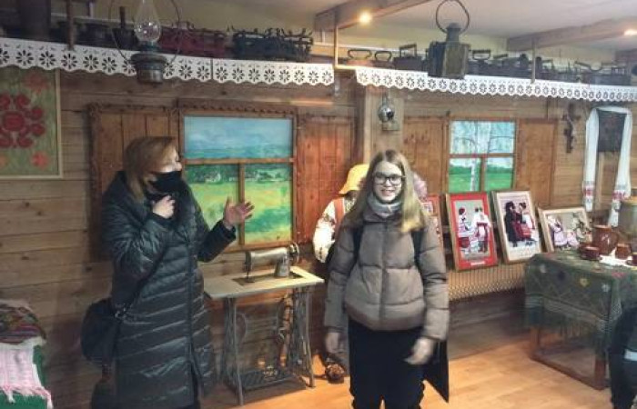 В «беларускай хаце» школьники познакомились с «бабіным кутам», место напротив печи, с предметами связанными с печью: кочергой, чепелой, вилками, чугунами. Учащихся заинтересовали угольные утюги, ткацкий станок, коллекция прялок. Немалый интерес вызвала экспозиция гончарных изделий. Для многих посетителей загадкой стал деревянный шест с кругом, прикреплённый к потолку и полу... Чтобы разгадать эту загадку, приглашаем учащихся школ посетить наш музей.
