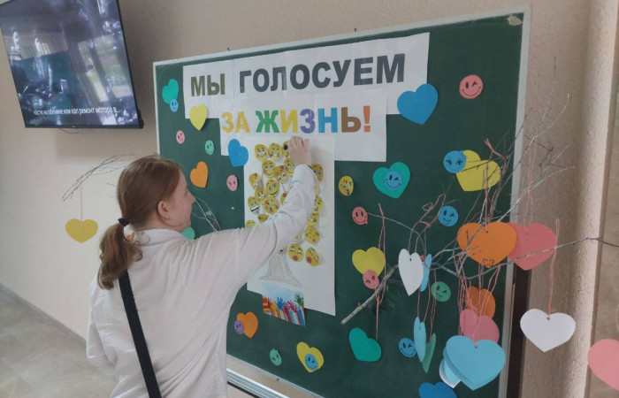 В рамках месячника по профилактике ценностного отношения к жизни в фойе колледжа педагогом-психологом проведена акция «Мы голосуем за жизнь!»