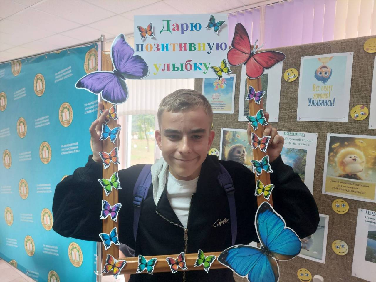 В рамках мероприятий месячника по формированию ценностного отношения к жизни в фойе колледжа педагогом-психологом была проведена акция «Дарю позитивную улыбку!».