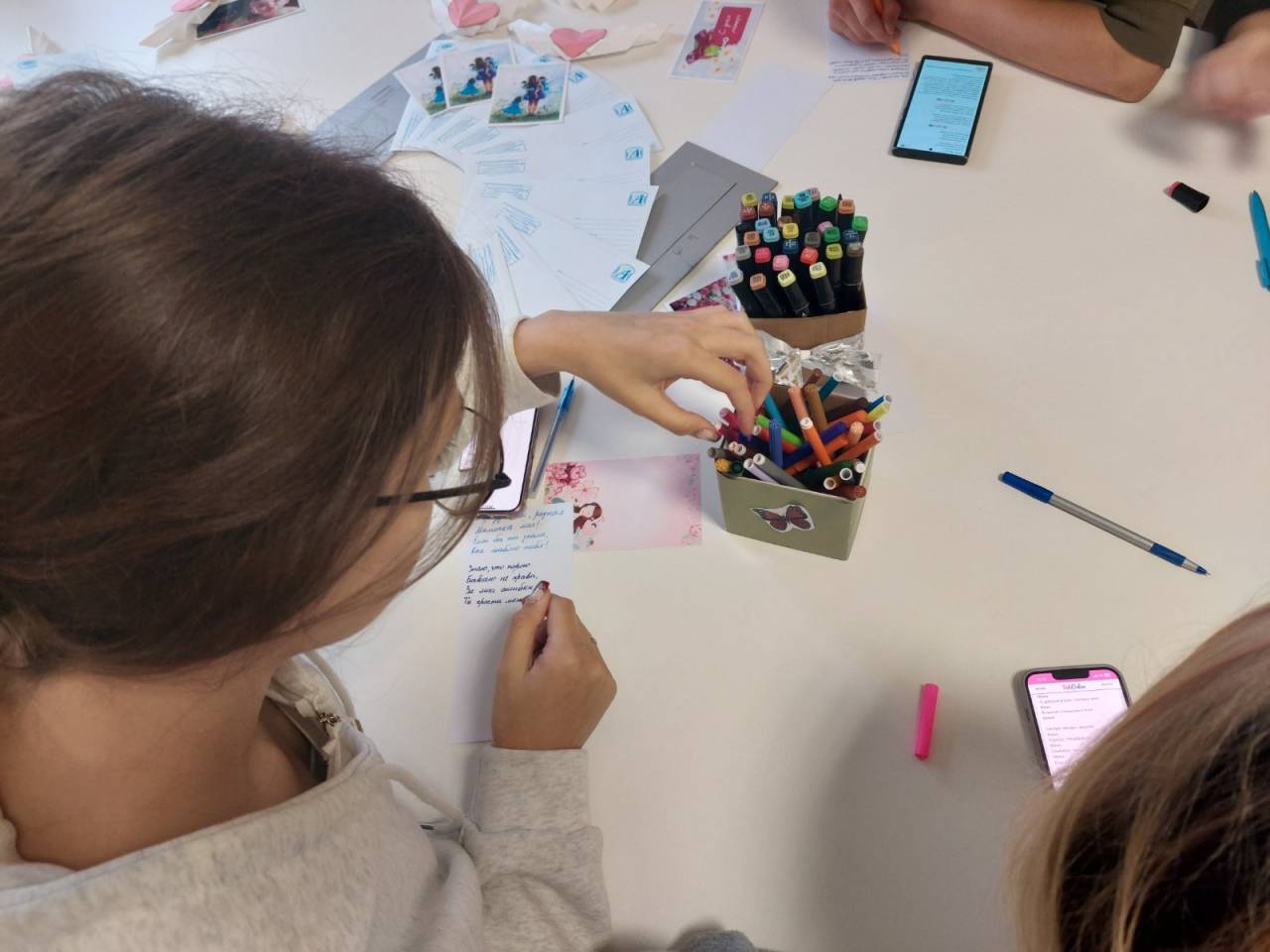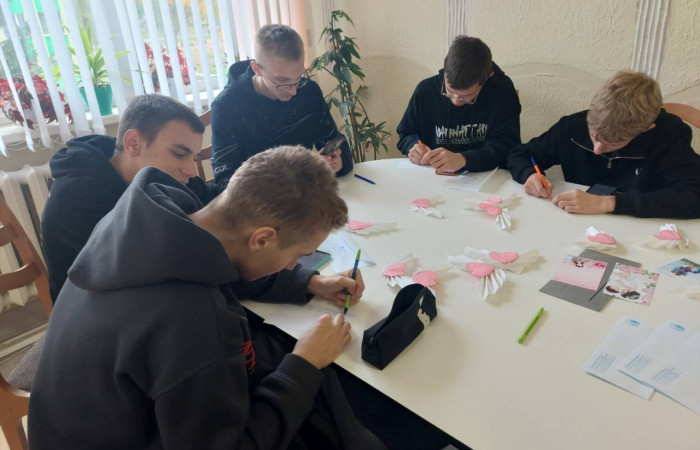 Ребята написали на открытках очень тёплые и трогательные слова и отправили их своим мамам.