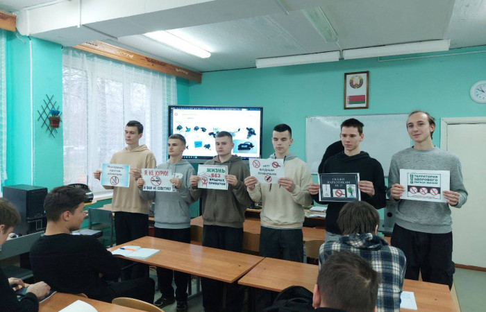 27 ноября 2024 года в рамках Недели профилактики вредных привычек «Здоровый стиль жизни» перед учащимися колледжа под руководством педагога-психолога Хомицевич А.В., педагога социального Филипчик Д.А. и председателя ученического профкома Пилипчук С.А. выступила агитбригада «Скажем вредным привычкам НЕТ, здоровью – ДА!».